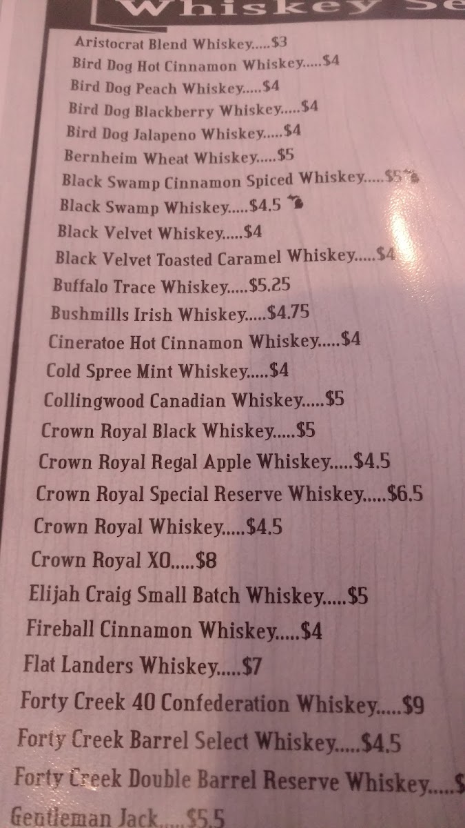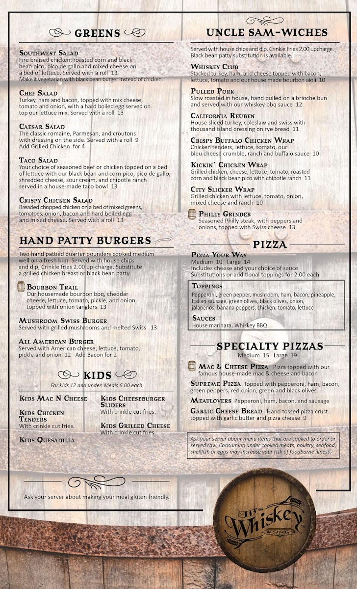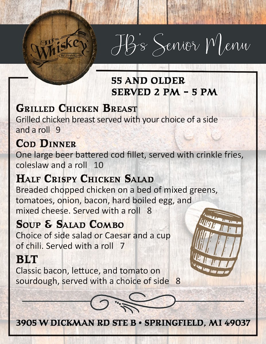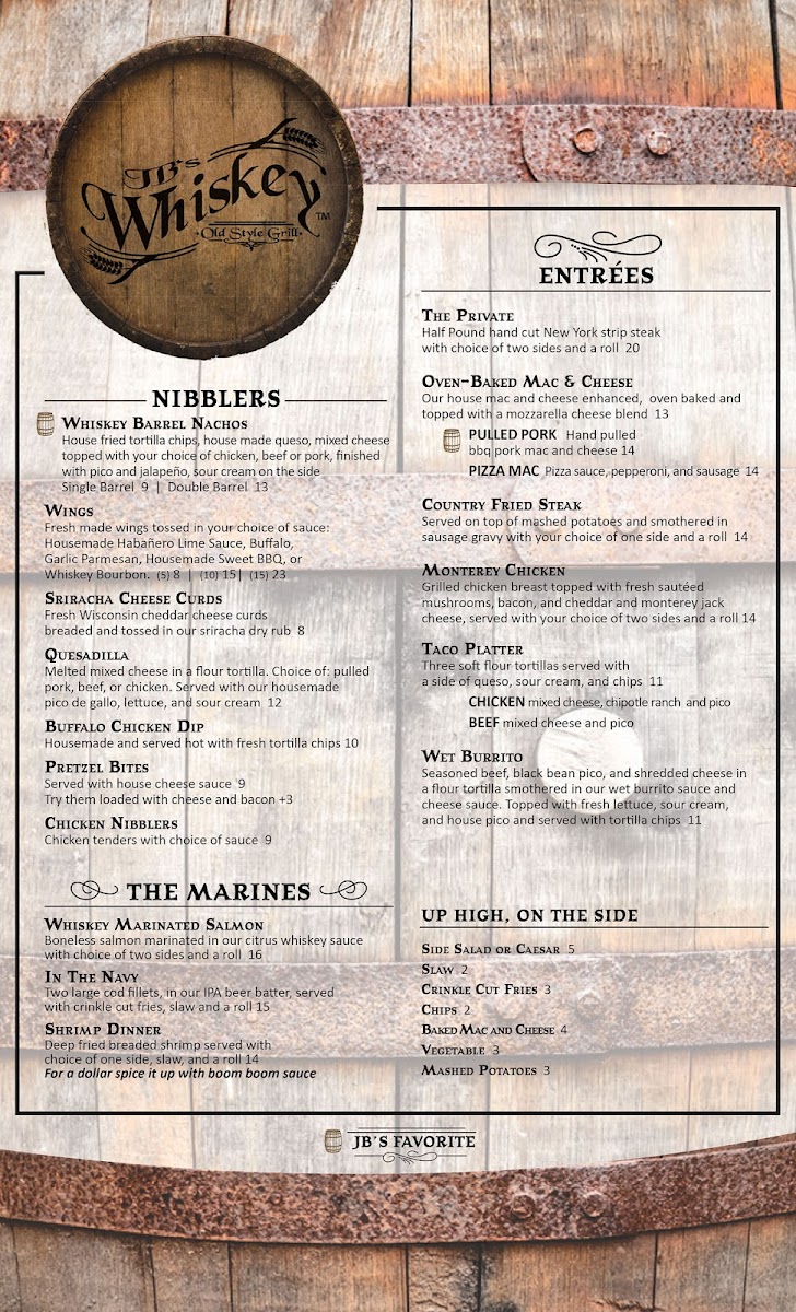 JB's Whiskey Menu (Update 2025)